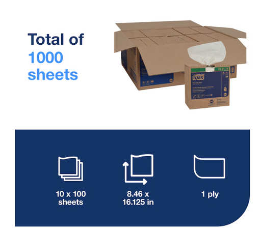 (PW-0480) Tork® Heavy Duty Paper Wiper, 1-Ply, 9-1/4" x 16-1/4", White, 90 Wipes/Box 10 boxes per case 450175
