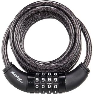 *** (CY-6000) Master Lock Self Coiling Cable Lock, 4 Feet x 5/16-inch, Black, Preset combination